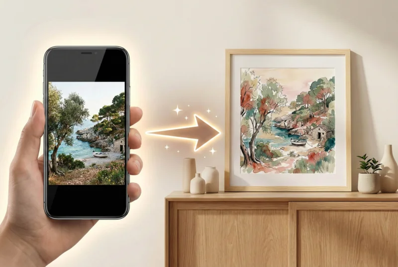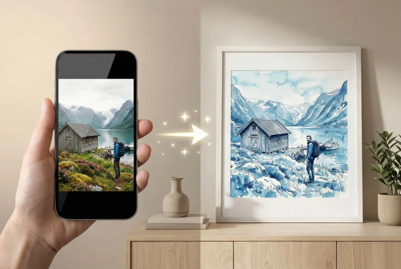 Verwandle deine Naturaufnahmen in atemberaubende Designs. Foto hochladen, KI-Stil wählen und dein fertiges Poster oder gerahmtes Wandbild in nur 1-2 Minuten bestellen.