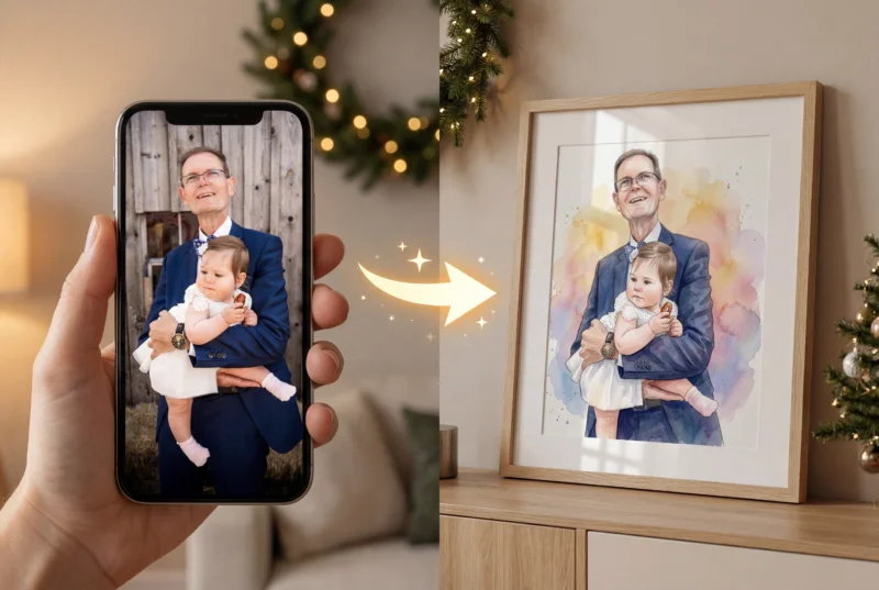 Dein Foto wird mit modernster KI-Technologie in brillante Kunstwerke verwandelt – gestochen scharf, detailreich und farbintensiv.